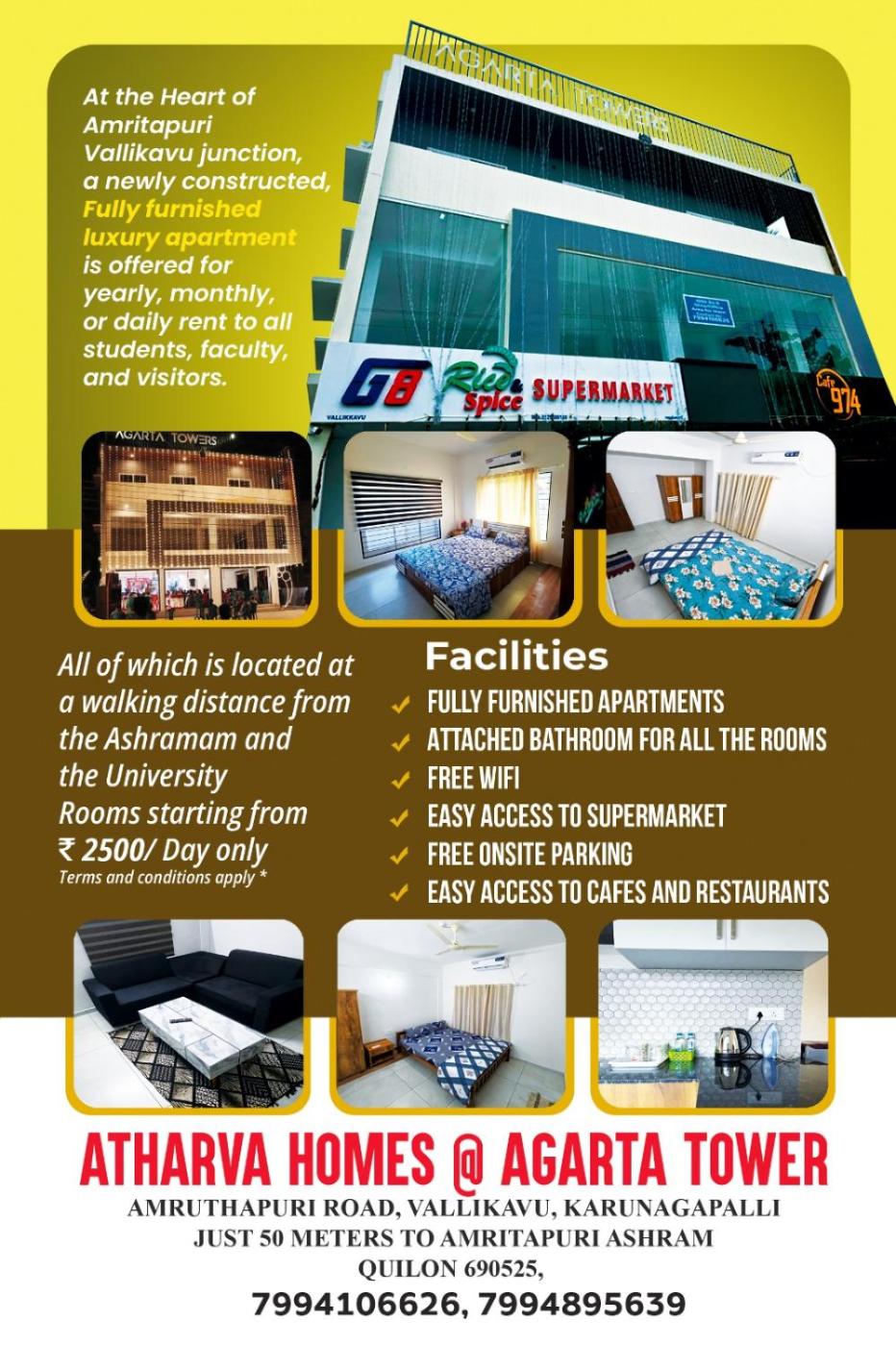 Set in PerinÄd, 24 km from Ashtamudi Lake and 26 km from Mannarasala Sree Nagaraja Temple, Agarta towers offers air conditioning. This property offers access to a balcony and free private parking. Thangassery Light House is 31 km from the apartment and Kollam Railway Station is 32 km away.